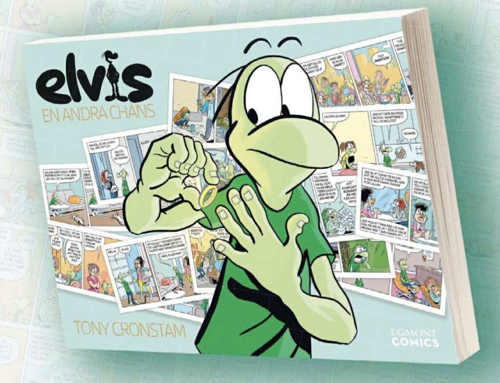 Sköldpaddan Elvis debuterade som serie i gratistidningen Metro, där den i strippformat publicerades mellan åren 2000-2010. År 2006 fick serien en medförfattare genom Tonys dåvarande fru Maria. Serien lades dock på is år 2014 efter att paret skiljts åt. I en intervju med Expressen förra året berättade Tony om seriens återkomst: